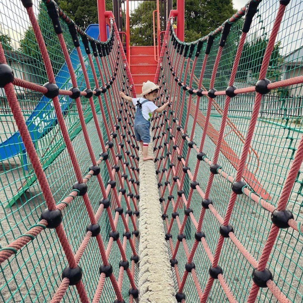 わんぱく広場の中の遊具で遊ぶお子様の写真です。とても楽しそうに笑う瞬間をとらえた、心温まるアットホームな作品である点を評価しました。